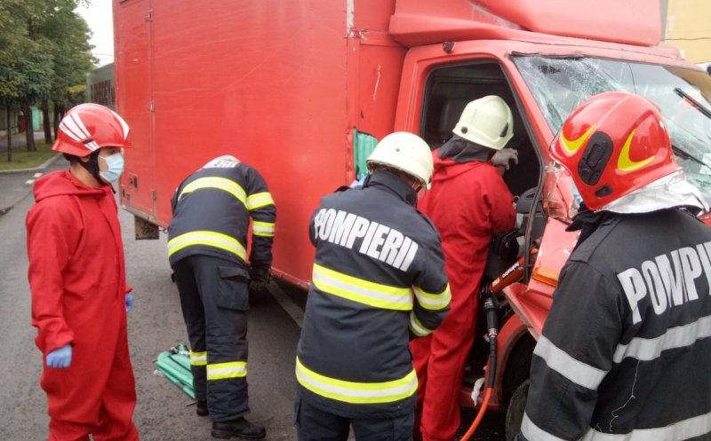 Solicitarea prin nr unic pentru apelulri de urgență 112 a fost primită în jurul orei 9.20, iar în momentul sosirii pompierilor la locul accidentului, au găsit un autocamion și o autoutilitară avariate și o persoană încarcerată în cabina autoutilitarei.