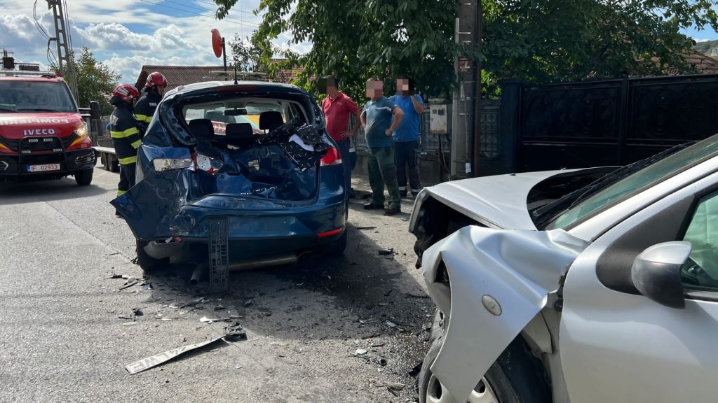 "Din primele cercetări a reieșit că o femeie, de aproximativ 35 de ani, care circula cu autoturismul înspre localitatea Chinteni, ar fi efectuat un viraj la stânga cu intenția de a pătrunde în curtea unui imobil, intrând în coliziune cu un autoturism, condus de o tânără de 26 de ani, din direcția opusă. În urma impactului, autoturismul femeii de 35 de ani a fost proiectat în alte 2 autovehicule, dintre care unul parcat, iar autoturismul tinerei a fost proiectat într-un alt autovehicul ce se afla parcat.