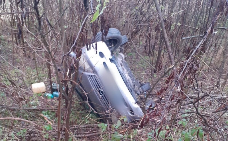 Foto Accident pe un drum din Cluj! A ieșit cu mașina în decor și s-a răsturnat