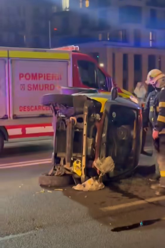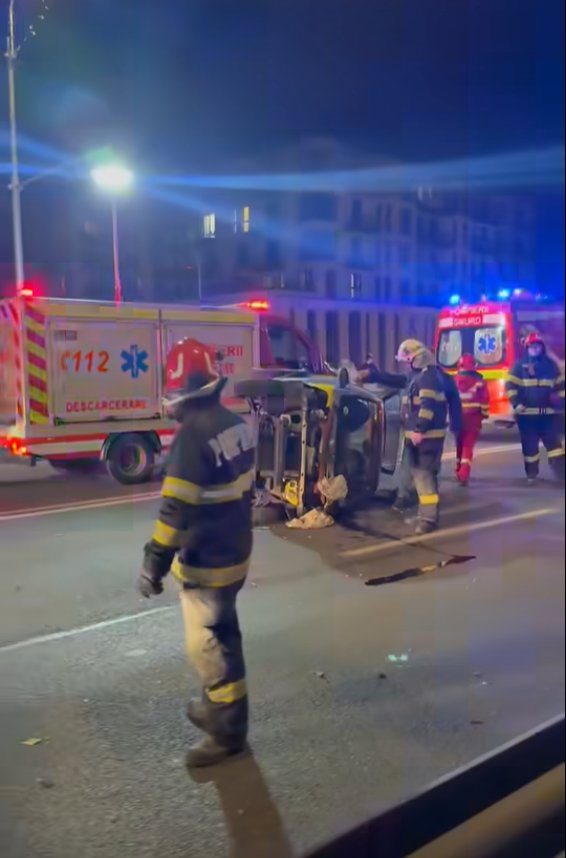 Accident teribil în Mărăști. O mașină s-a răsturnat pe podul de pe Aurel Vlaicu: "S-a făcut praf"