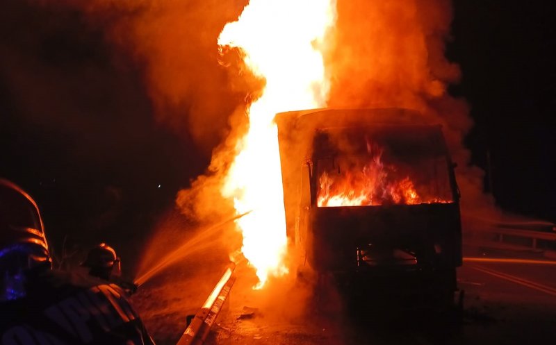 "La fața locului intervin două autospeciale pentru stingerea incendiilor, unde a fost găsit autocamionul, inclusiv rezervorul de carburant, și încărcătura acestuia, respectiv materiale din polistiren, arzând generalizat. Se acționează în aceste momente pentru stingerea incendiului, fiind în prezent localizat de către pompieri, fără posibilități de extindere la vecinătăți", a transmis ISU Cluj.