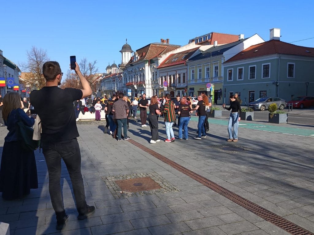 În cursul zilei de sâmbătă, mai mulți oameni au profitat de vremea foarte bună de la Cluj-Napoca și au celebrat sosirea primăverii prin dans și distracție chiar în centrul orașului.