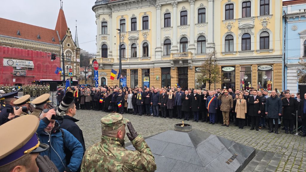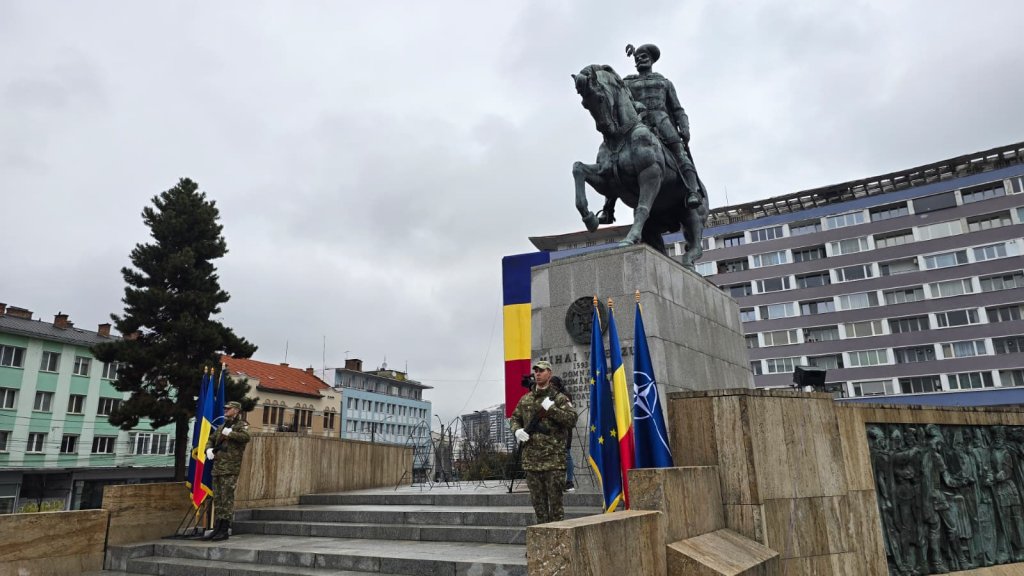 Manifestările dedicate Zilei Naționale a României au început la Cluj-Napoca în Piața Mihai Viteazul, cu ceremonialul depunerii de coroane și jerbe de flori la statuia ecvestră a domnitorului.