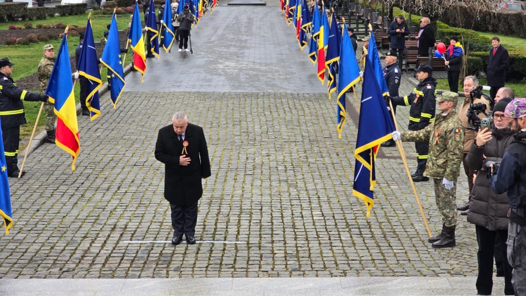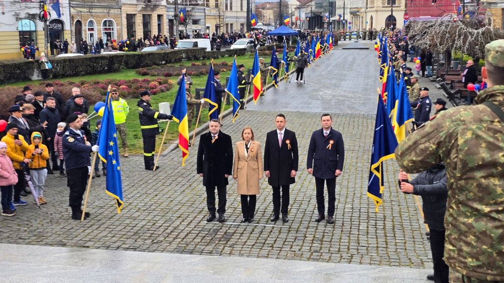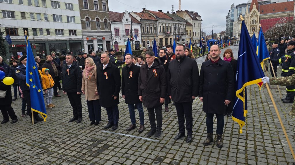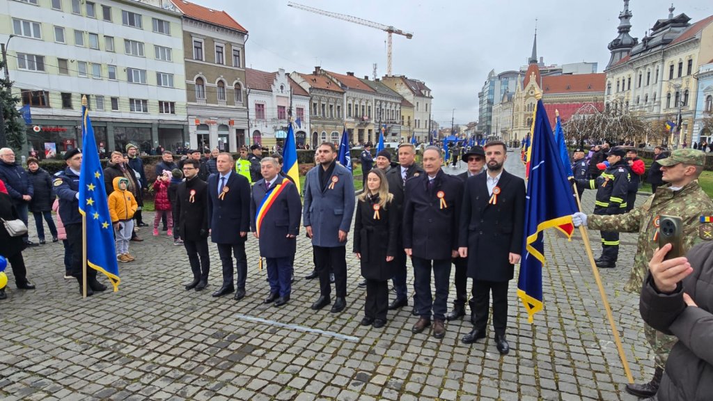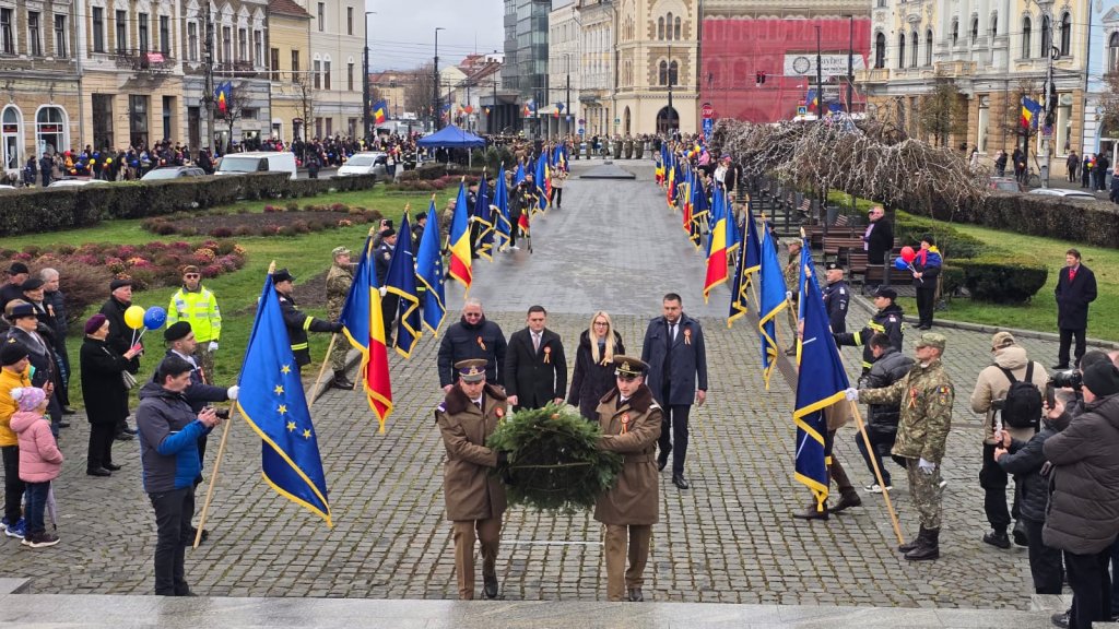Manifestările de Ziua Națională a României au început la Cluj-Napoca cu o ceremonie de depunere de coroane și jerbe de flori în Piața Mihai Viteazul.