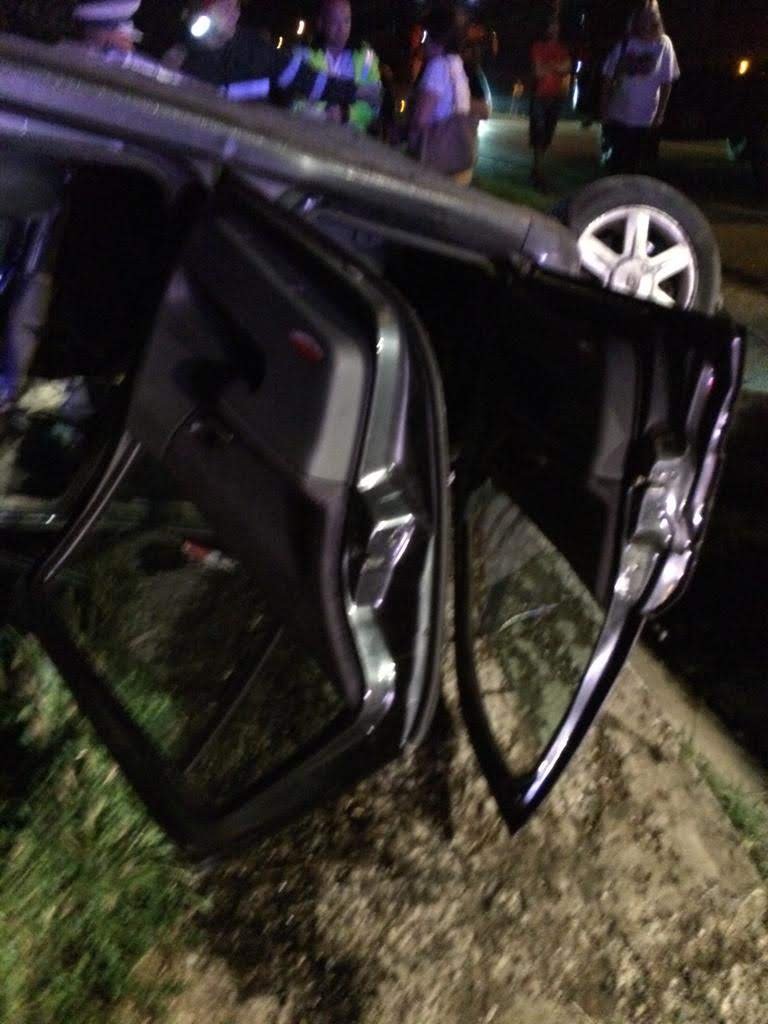 Evenimentul a avut loc în jurul orei 22.00, iar pompierii sosiți la locul evenimentului au găsit unul dintre autoturismele implicate răsturnat pe plafon. Înăuntru acestuia se afla un bărbat cu multiple traumatisme.