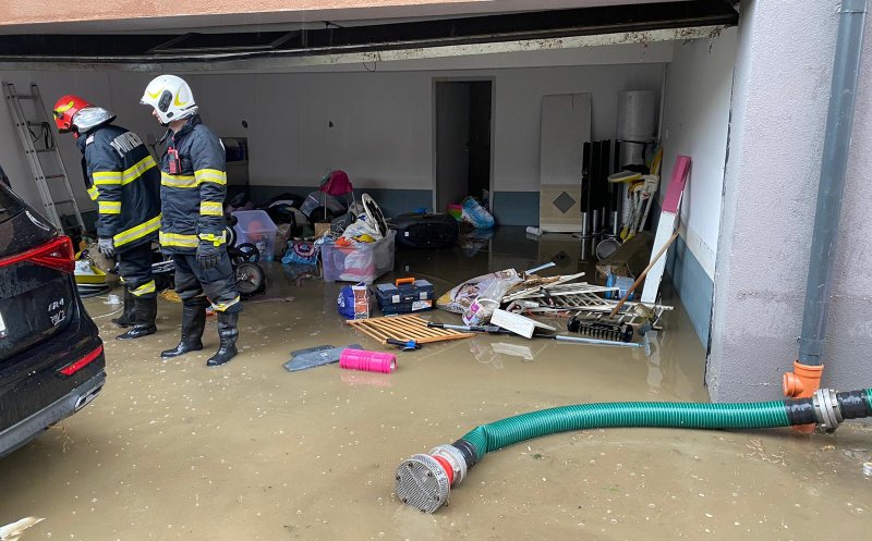 Foto Bilanțul ISU după ploaia de la Cluj: Intervenții în garaje, subsoluri, hale și curți inundate
