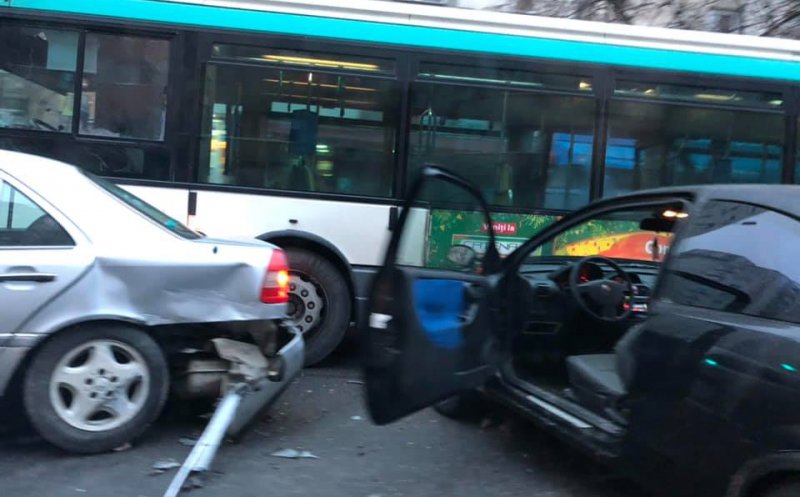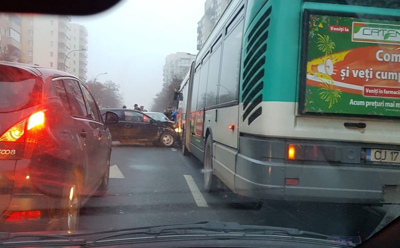O intersecţie de pe Calea Floreşti a fost blocată, luni dimineaţa, de un accident în care au fost implicate două maşini şi un autobuz.