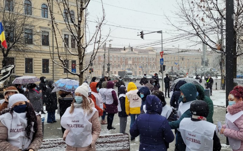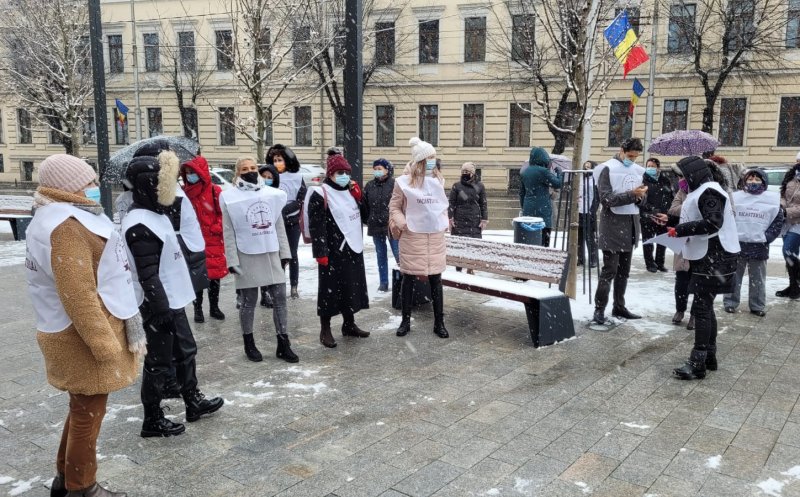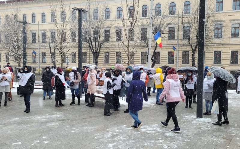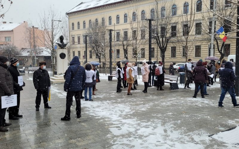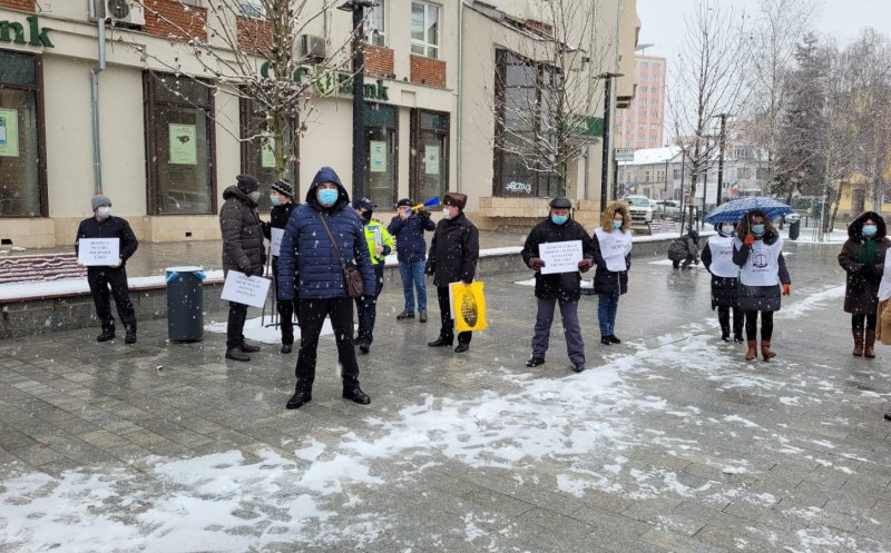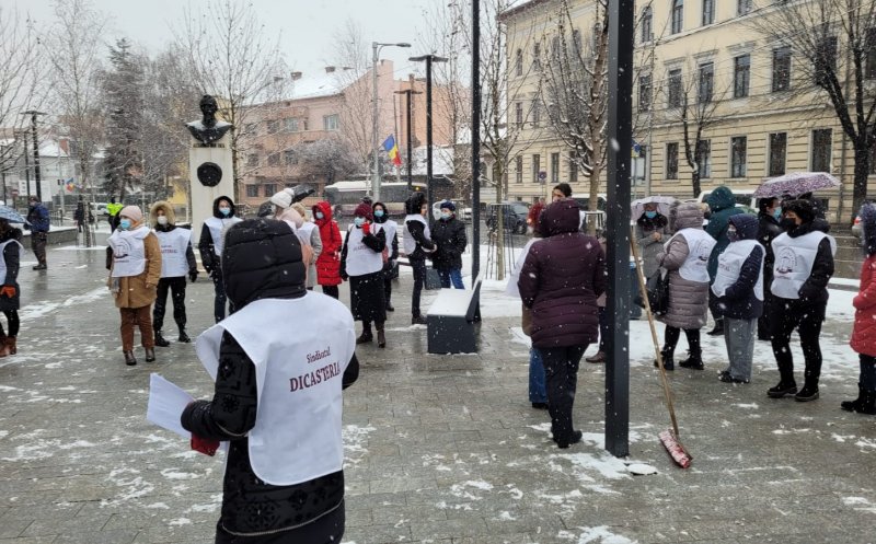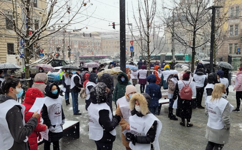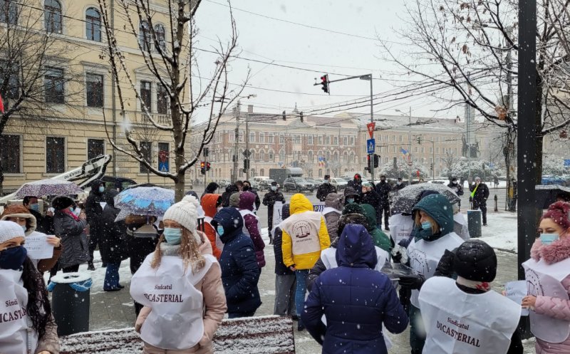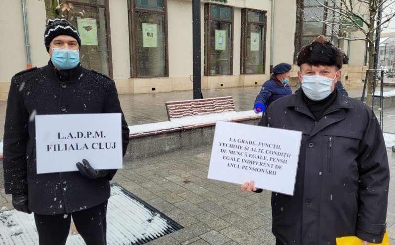 Sindicalişti din cadrul Sindicatului Național al Lucrătorilor de Penitenciare, Liga pentru Apărarea Drepturilor Pensionarilor Militari, Sindicatul Național al Grefei Judiciare Dicasterial, dar şi din poliţie, asistenţă socială sau finanţe au protestat, miercuri, la prânz, pe o ninsoare generoasă, în faţa Prefecturii Cluj, faţă de intenţia guvernului de a îngheţa în 2021 salariile angajaţilor din sistemul public.