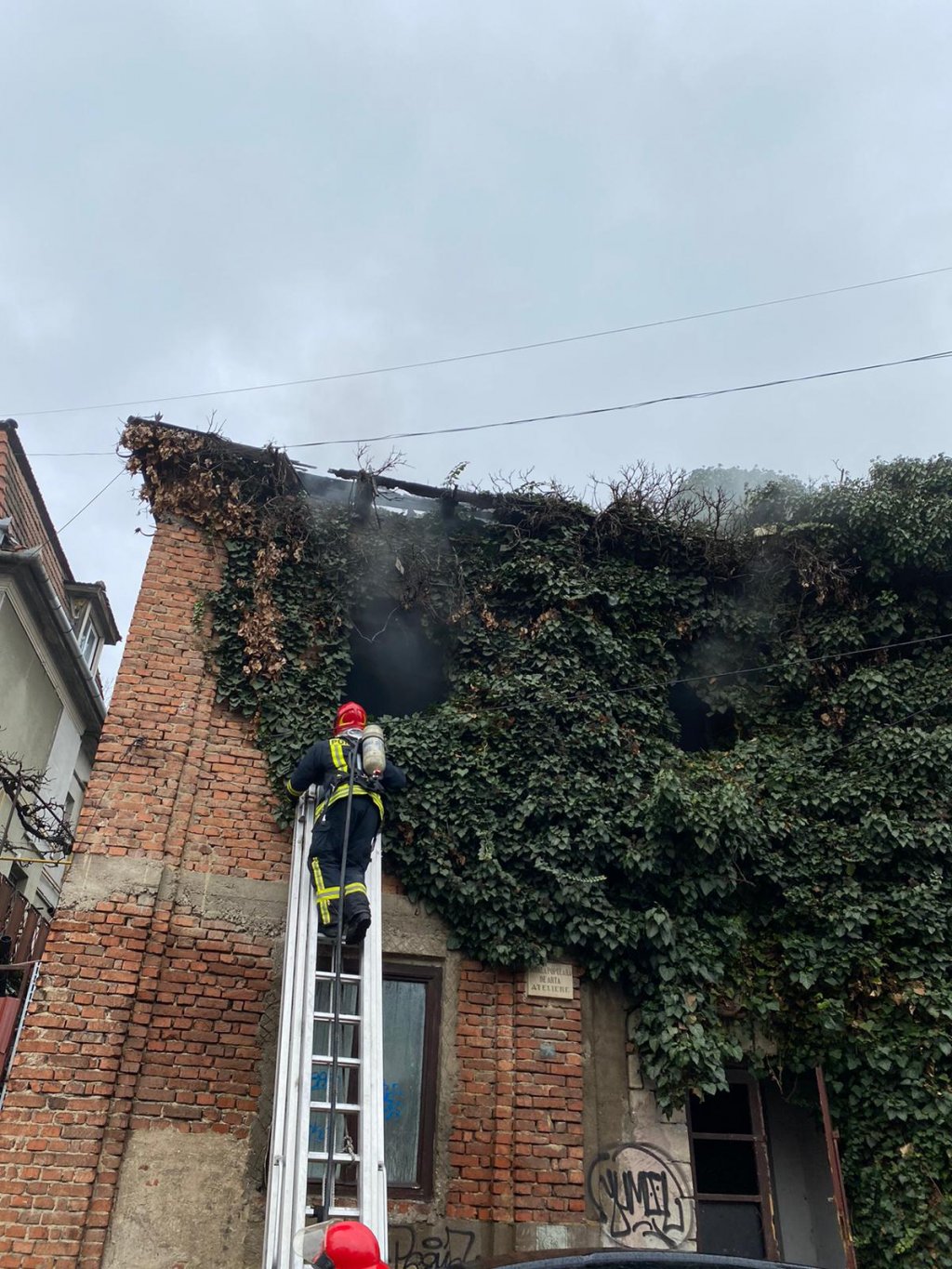 UPDATE 10.29: Potrivit ISU Cluj, nu au fost rănite persoane în urma acestui eveniment. Incendiul a fost stins și a cuprins mai multe deșeuri depozitate în interiorul clădiri, precum și câteva grinzi de lemn din structura acoperișului. Imobilul nu este locuit, fiind un loc frecventat de persoane fără adăpost.