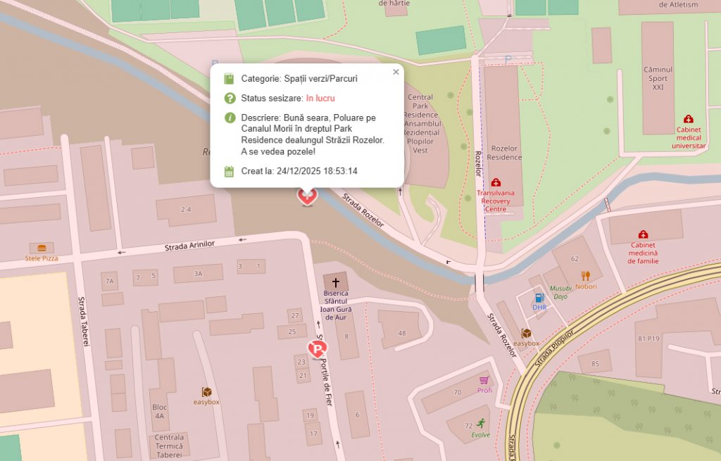 Cert e că apa e poluată, iar un alt cetățean e convins că de undeva de la vreun șantier se scurg deșeuri în Canal: ”Deșeuri de pe vreun șantier de blocuri de pe undeva”. Omul cu spirit civic a făcut deja sesizare și în aplicația MyCluj, iar aceasta apare cu specificația ”în lucru”, semn că primăria a luat act de ceea ce se întâmplă în apropiere de Parcul Rozelor.