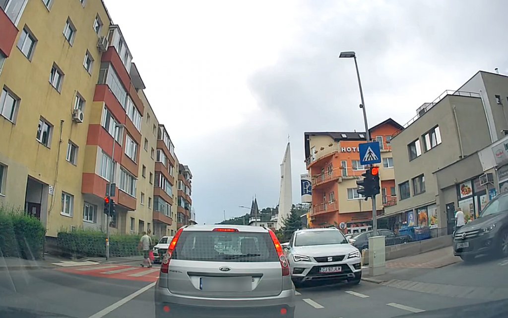 O manevră pe contrasens a fost surprinsă luni, 8 iulie, pe strada Donath din Cluj-Napoca, în apropiere de hotelul Premier.