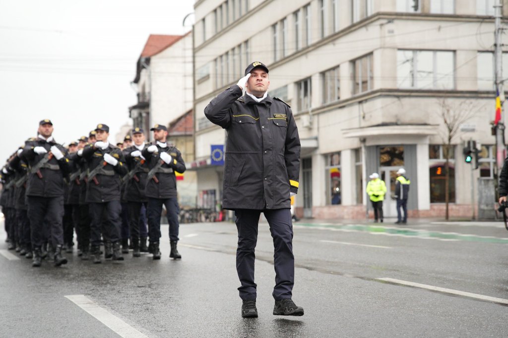 “Le transmitem un călduros ‘La mulți ani!’ colegilor noștri, Fleșeriu și Grecu, care își serbează astăzi ziua onomastică și care fac parte din detașamentul de defilare.
