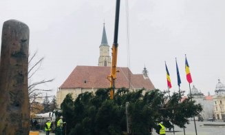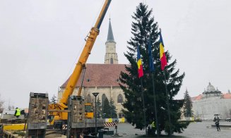 Clujul se pregătește de Crăciun! S-a montat bradul în Piața Unirii