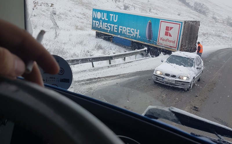 Accidente pe șoselele din Cluj, în care au fost implicate TIR-uri, mașini și autobuze. Totul pe fondul ninsorii căzute în ultimele ore.