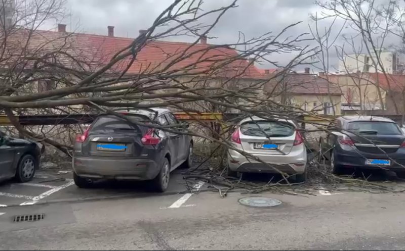 Foto Copac CĂZUT peste mai multe mașini în centrul Clujului