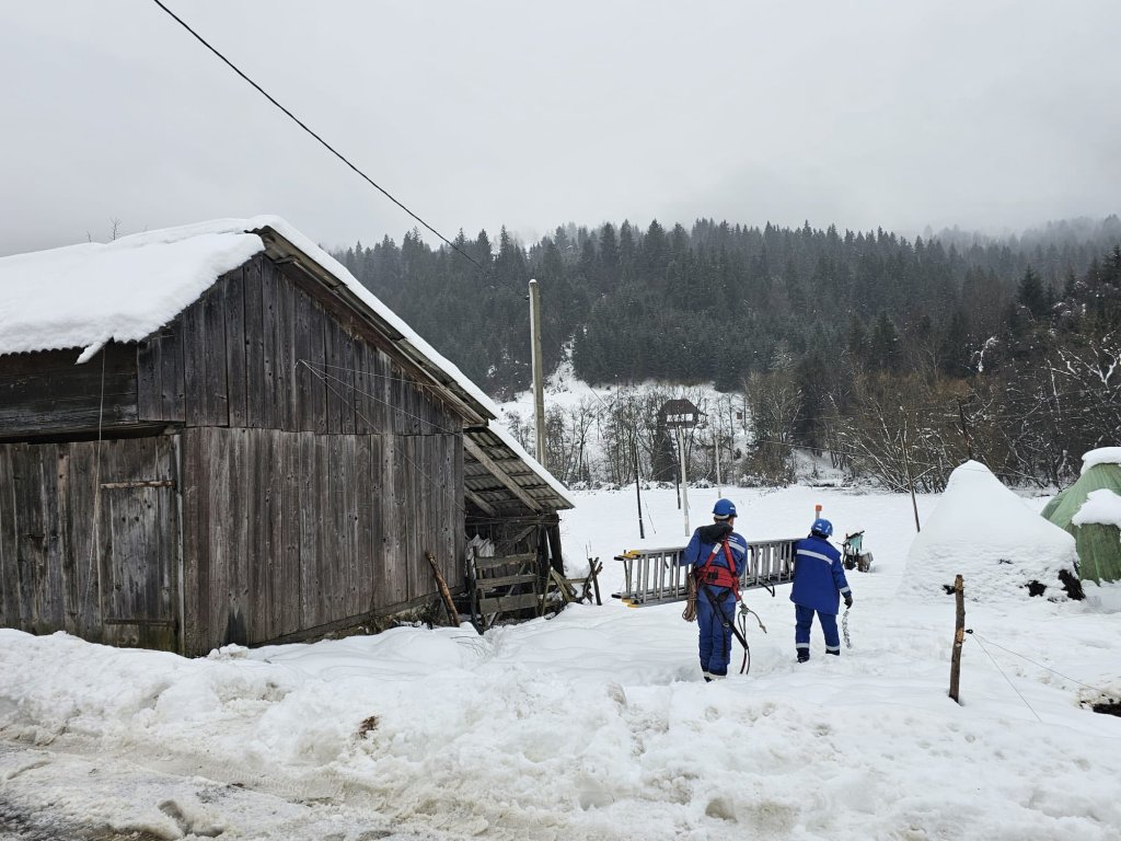 Ultimele 24 de ore au însemnat lucrări la înălțime, căutarea conductoarelor rupte sub nămeți, refacerea rețelelor afectate și intervenții în condiții de siguranță maximă, în ciuda oboselii acumulate.