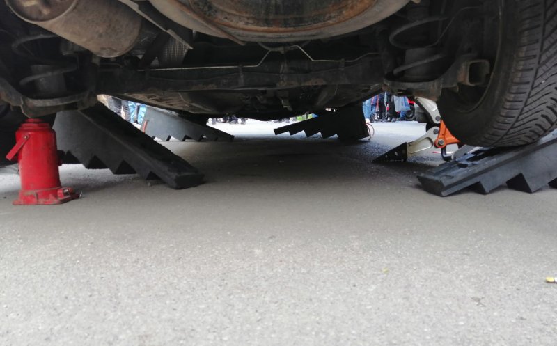 Un accident s-a produs, în cursul zilei de astăzi, în care o femeie a fost lovită de o mașină pe trotuar, iar ulterior a rămas blocată sub aceasta.