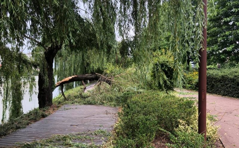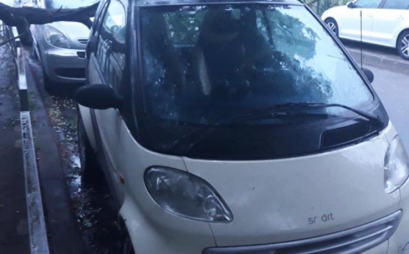 Maşini distruse, copaci căzuţi pe şosea, panouri smulse de vânt.