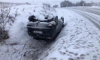 Foto Iarna le dă mari bătăi de cap șoferilor. O mașină s-a răsturnat lângă pârtia de schi Feleacu, alta lângă Lita