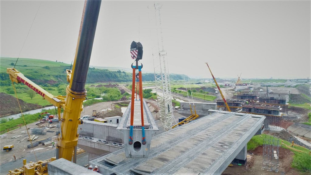 Video Foto Imagini spectaculoase, din dronă, cu instalarea grinzilor pe podul Gilău. Cât vor dura lucrările