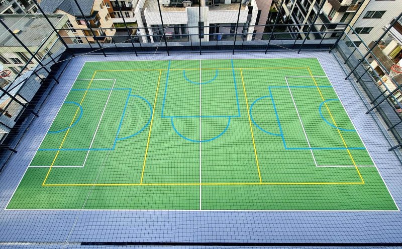 Unul din zecile de blocuri noi din cartierul Bună Ziua se diferențiază de celelalte printr-un.... teren de sport construit deasupra etajului 7. Tu ai juca fotbal sau baschet aici?