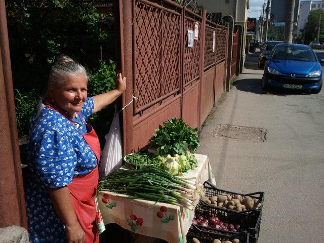 Se întâmplă în cartierul Mărăşti, unde o femeie cultivă pe câţiva ari salată, ceapă şi alte legume, pe care le vinde chiar la poarta casei. "Nu-mi ajung banii de pensie", explică ea şi arată palmele bătătorite: "nu fac nimic ilegal, nu-s bişniţarănu dau în cap, vând numai legume din grădină, de aici şi de pe strada Tulcea unde locuiesc, să am ceva bani pe lângă pensie", spune ea.