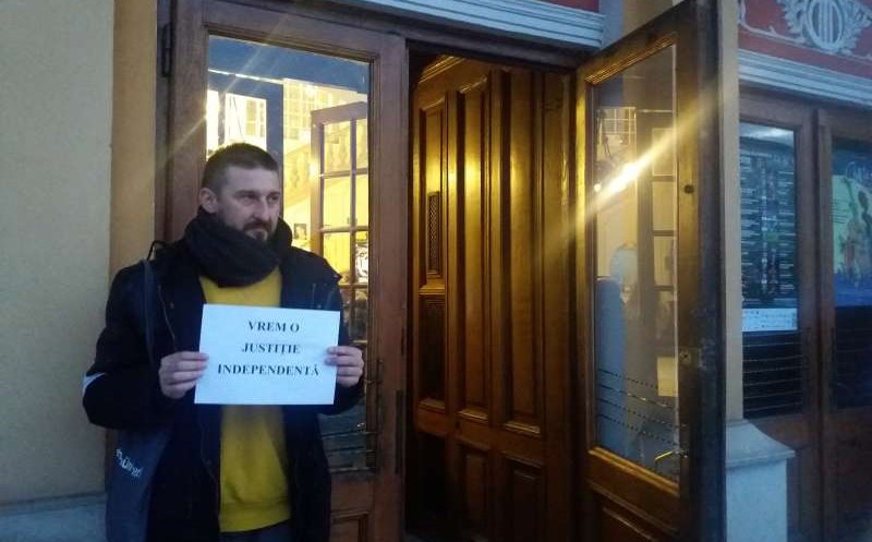 Un protest al actorilor a avut loc joi seară, în faţa Teatrului Naţional din Cluj, unde artiştii au venit purtând banderole albe pe braţ şi coli în mâini, cu mesaje privind susţinerea independenţei Justiţiei.