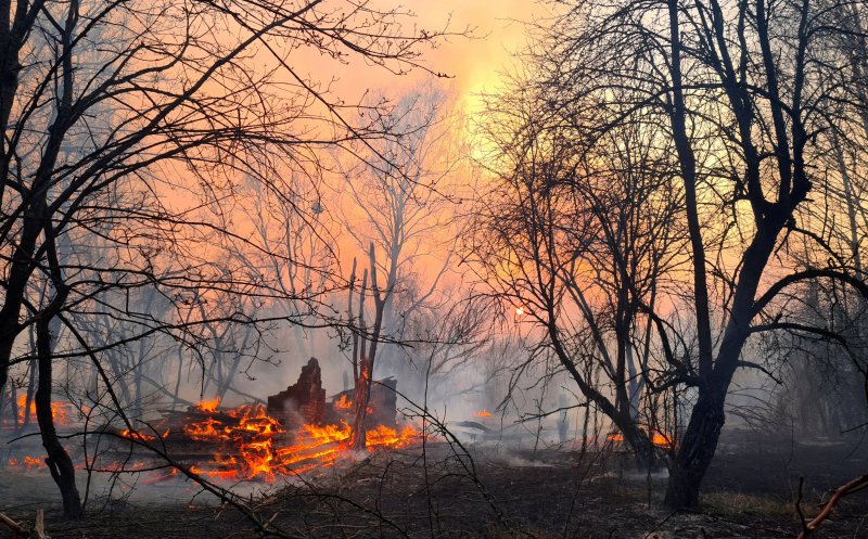 Incendii de vegetație la Cernobîl. Crește riscul de răspândire a fumului radioactiv