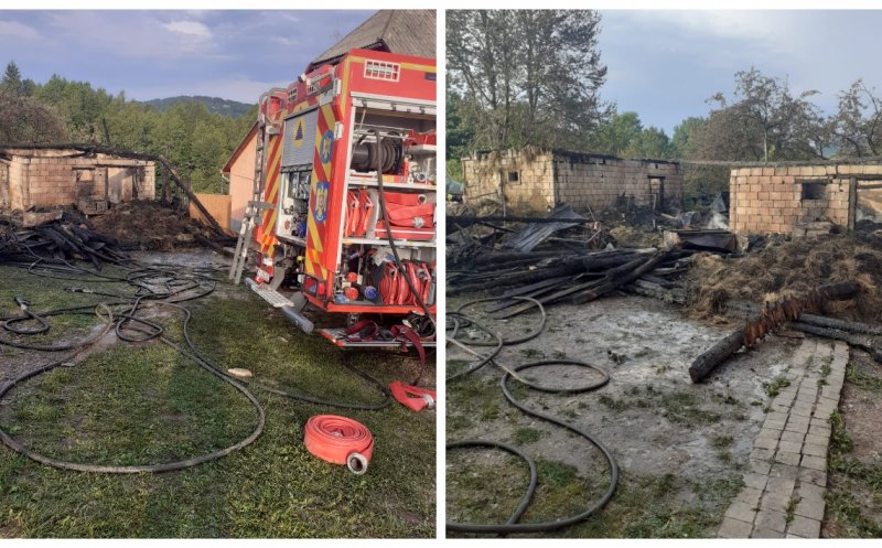 Foto INCENDIU devastator provocat de trăsnet, într-un sat din Cluj. Mai multe animale au murit