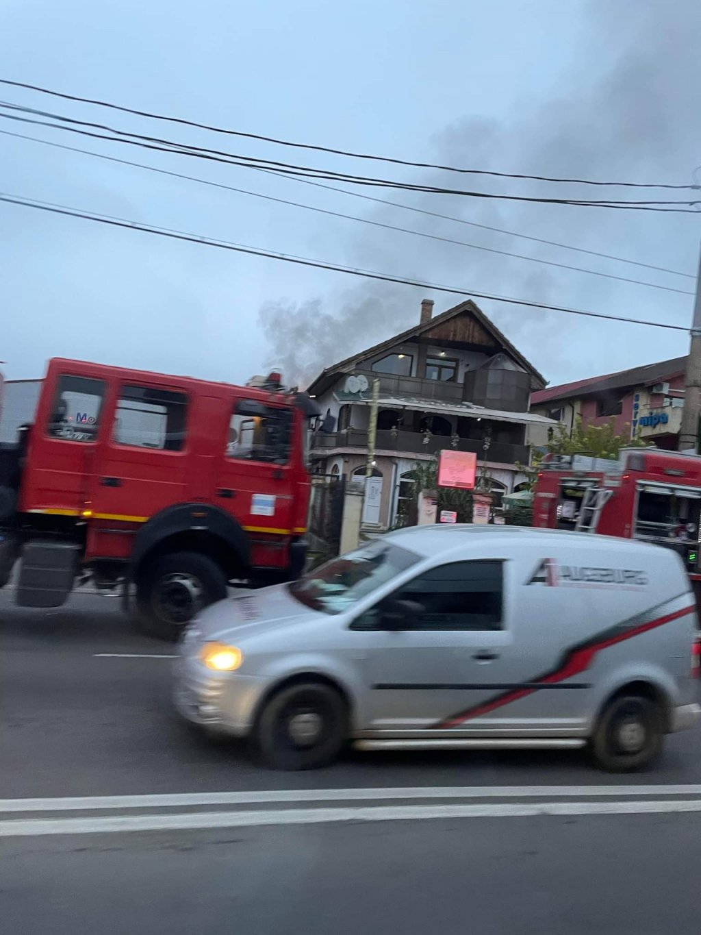 "Se intervine în aceste momente pentru stingerea unui incendiu care a cuprins un acoperiș al unui imobil situat pe strada Traian Vuia.