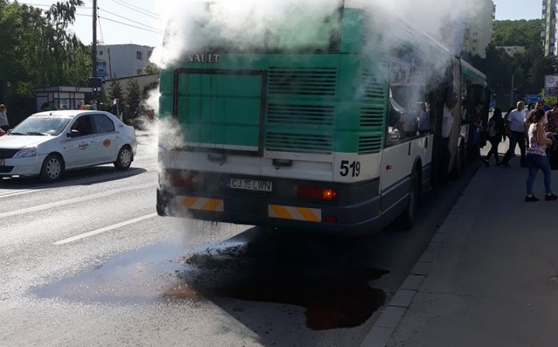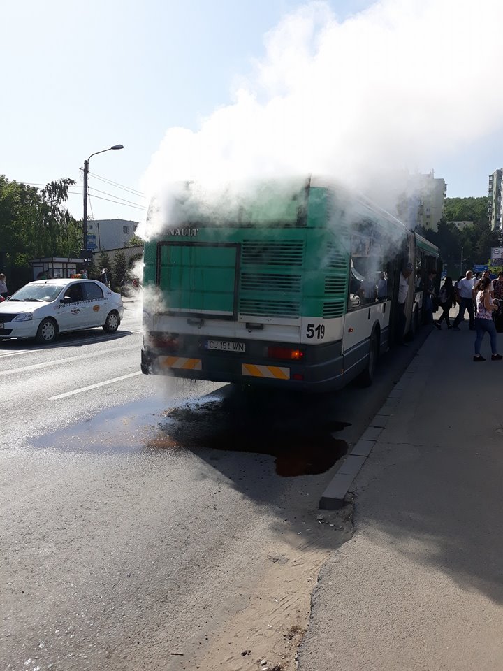 Incendiu la motorul unui autobuz CTP, vineri dimineaţa, în Mănăştur. Pasagerii au fost evacuaţi şi se pare că nimeni nu a fost rănit.