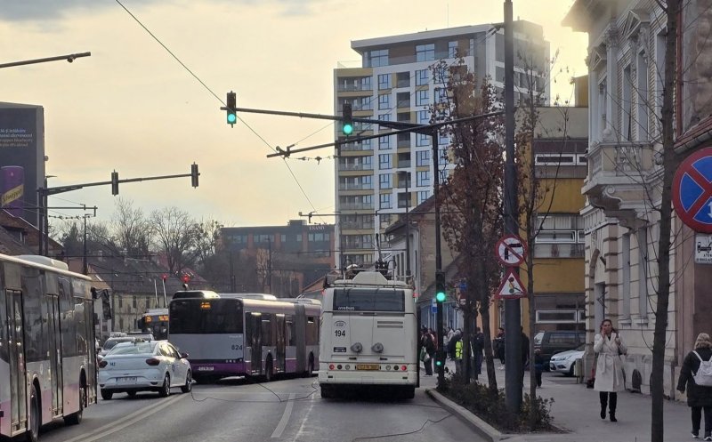 Foto Incident în traficul din Cluj-Napoca: Un troleibuz a rupt firele de tensiune. Circulație îngreunată