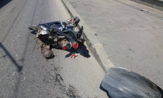 Foto Incident rutier la Cluj: motoscuter făcut praf şi o maşină avariată. Tânărul care îl conducea s-a ales cu dosar penal