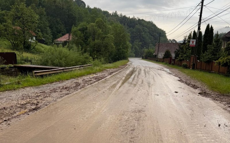 Foto Intervenții de urgență pe un drum din județul Cluj. Ploaia a făcut ravagii