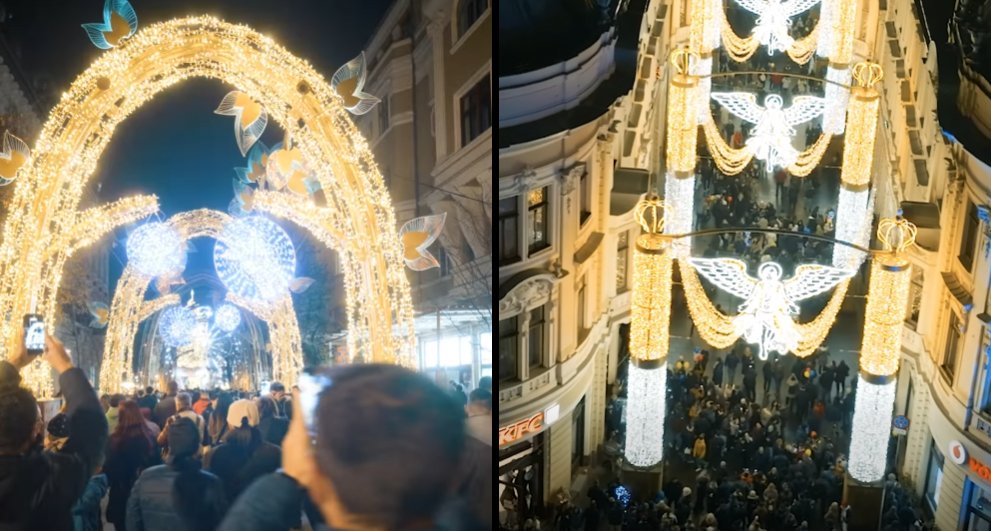 Video Foto Invitație pe străzile Kogălniceanu și Universității: Instalațiile multimedia de lumini aduc atmosfera de sărbători în inima orașului
