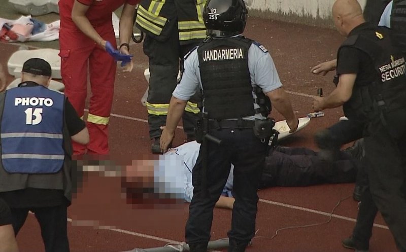 “Pacient în vârstă de 45 de ani, adus de pe stadion unde își îndeplinea funcția de jandarm, a fost diagnosticat la Unitatea de Primire a Urgențelor (UPU) cu traumatism cranio-cerebral, grad 1, fractură cu înfundare parietală stânga, plagă contuză parietală stânga. După evaluare, stabilizare a fost trimis la Clinica Neurochirurgie, unde este în observație la secția de terapie intensivă”, a declarat Adela Golea, medicul şef de la UPU – Serviciul Mobil de Urgență Reanimare Descarcerare Cluj.