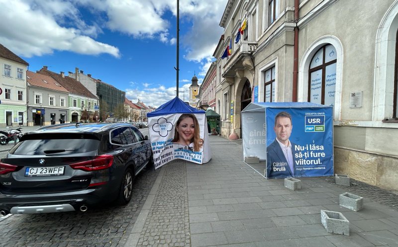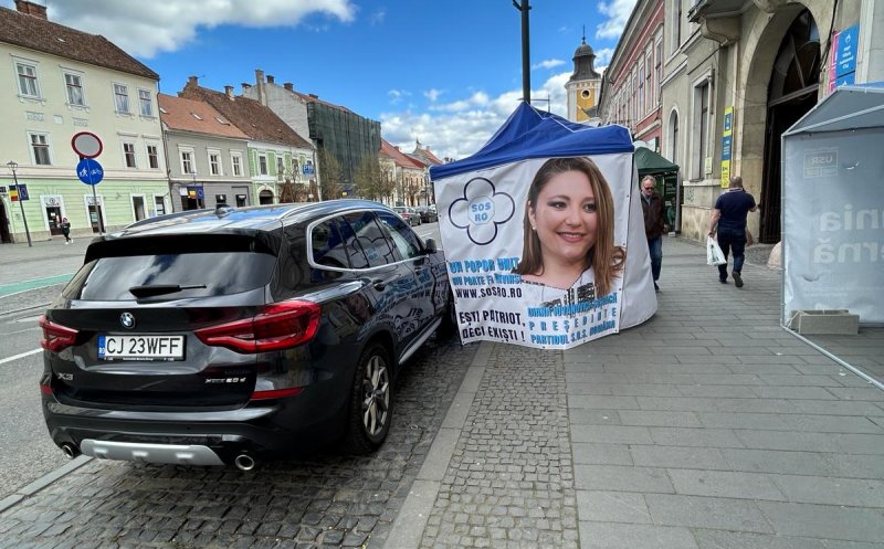 Confruntare extrem de interesantă, marți, la Cluj, pe fondul vijeliilor. Cortul electorala al senatoarei Șoșoșacă s-a luat la ceartă cu un BMW X3 parcat pe strada Eroilor.