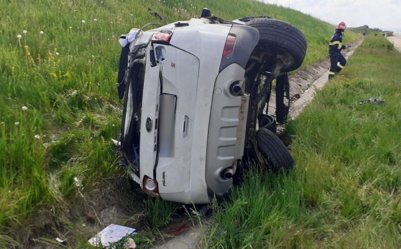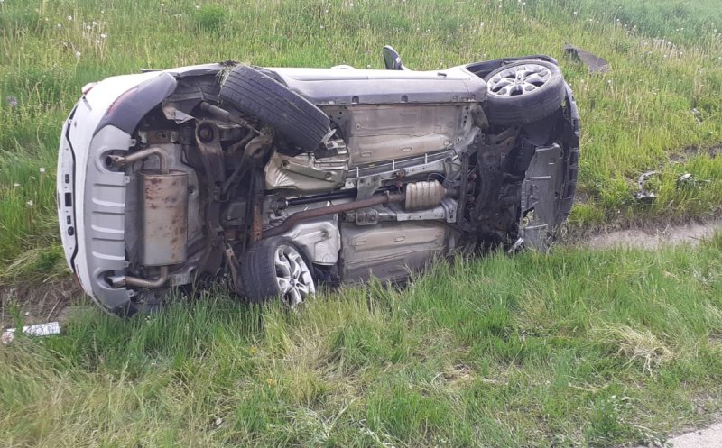 Foto Mașină răsturnată pe Autostrada Transilvania, spre Turda. Doi adulți și un minor de 5 ani, răniți