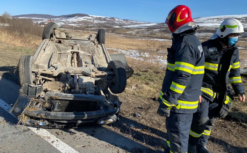 O mașină s-a răsturnat joi dimineața, între Cluj-Napoca și Turda, în zona localității Vâlcele.