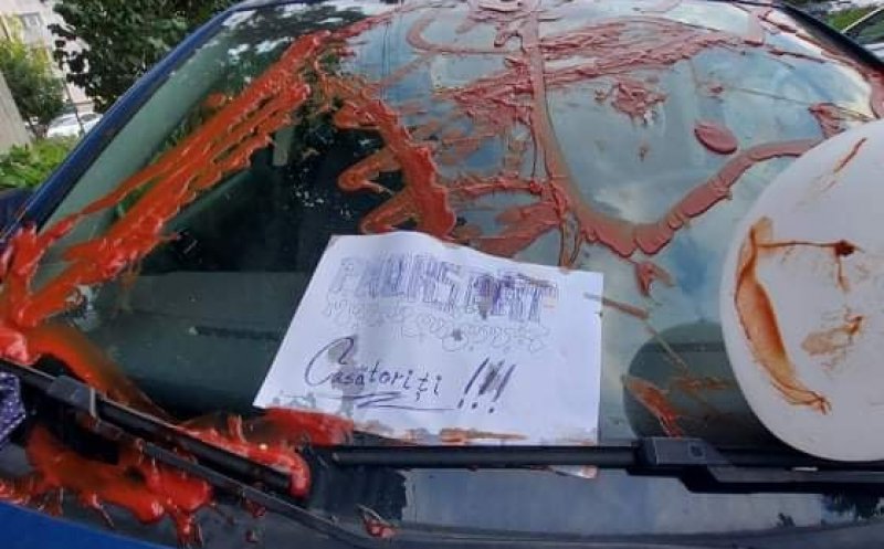 Foto Mașină vandalizată în Mănăștur cu mesajul: ''Proaspăt Căsătoriți''