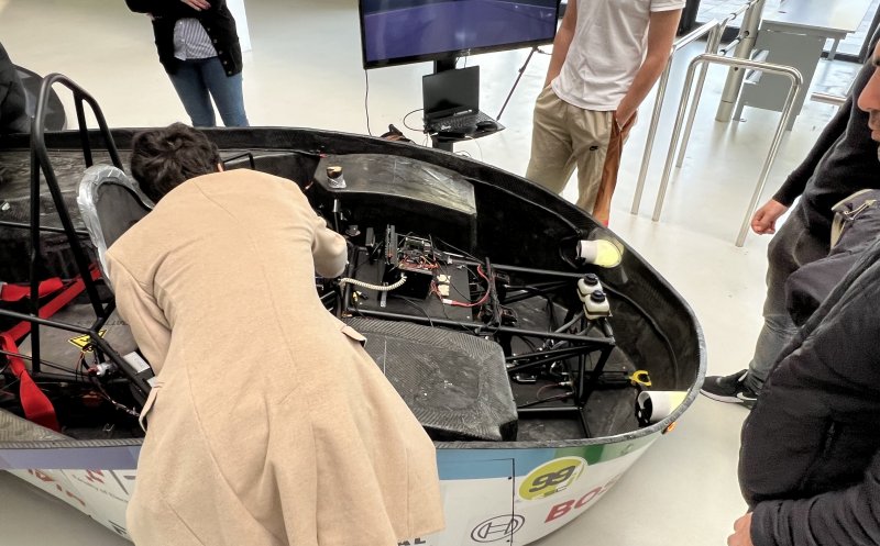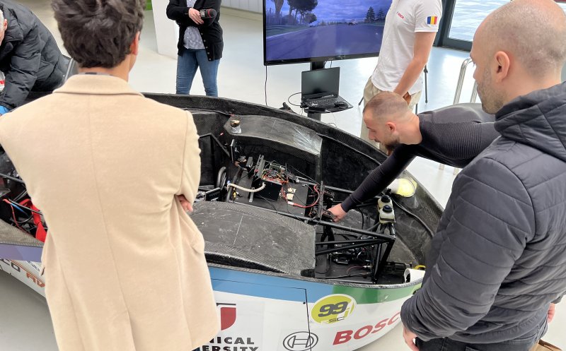Studentul implicat în proiect mai spune că investiția totală în vehicul a fost de 150.000 de euro, dintre care, jantele cu motorul au costat 35.000 de euro, fibra de carbon în jurul sumei de 30.000 de euro.