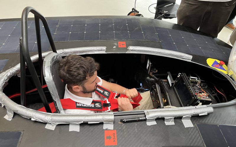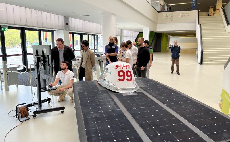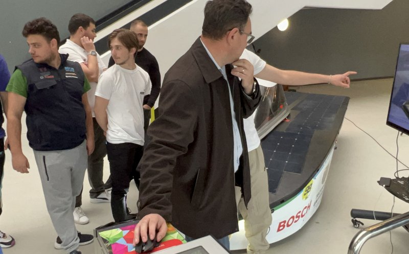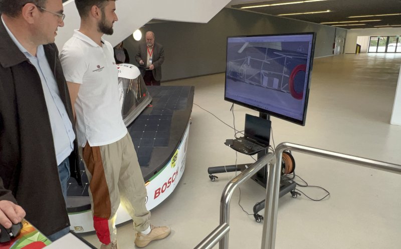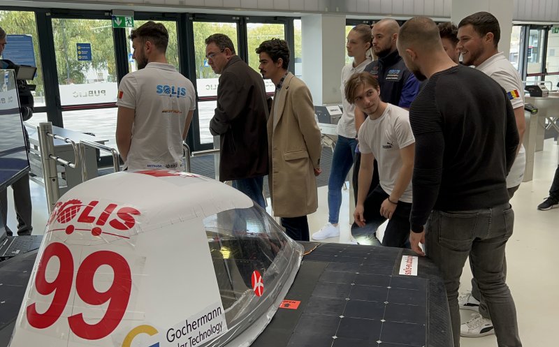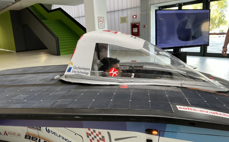 Este o mașină cu propulsie solară. Practic, noi încercăm să construim un vehicul care să fie independent din punct de vedere energetic, să reușim să captăm energie solară astfel încât s-o repropulsăm într-o cursă de anduranță. Vehiculul de față a participat la o cursă de anduranță de 24 de ore în Belgia și la o cursă de nouă ore în Italia, pe circuitul de Formula 1 de la Imola. Practic, acesta este un proiect realizat de către studenții de la două facultăți din cadrul UTCN, cei de la inginerie electrică și cei de la robotică. Mașina de față este rodul munci al unui an de zile. Studenții au lucrat la tot ce înseamnă proiectare și construcție. Șasiul și bateria sunt construite de către studenții noștri - Călin Neamțu, coordonatorul acestui proiect împreună cu dl. conf. Ștefan Breban, inițiatorul.