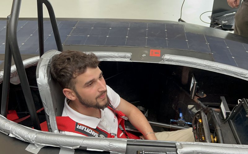 „Pentru noi, ca studenți, cea mai mare provocare a fost să reușim să finalizăm la timp acest proiect, deoarece am început puțin cam târziu, dar cu ajutorul colegilor și cu implicarea profesorilor și a tuturor celor de la facultate, am reușit să terminăm și să parcurgem 600 de km cu acest vehicul pe un circuit de Formula 1. Pe partea electrică avem o baterie de de 5 KWh, un motor limitat la 2 KWh. Pe partea mecanică avem trei roți, două suspensii acționate individual pe față, iar pe spate, o singură roată, însă cu două suspensii acționate și ele individual. Caroseria este complet din fibră de carbon, șasiul este din fier, iar rezistența acestui vehicul este la 5 G-uri. Provocarea acestei mașini este de a o face una care să fie produsă în serie, însă acum este doar pentru competiții de motorsport, pentru că de aici se începe”, a declarat Sebastian Șuteu, student în anul III la specializarea Robotică, în cadrul Facultății de Inginerie Industrială, Robotică și Management-ul Producției de la UTCN.