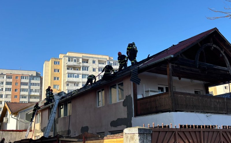 Incendiul a avut loc la acoperișul unui imobil pe o suprafață de aproximativ 100 de metri pătrați.