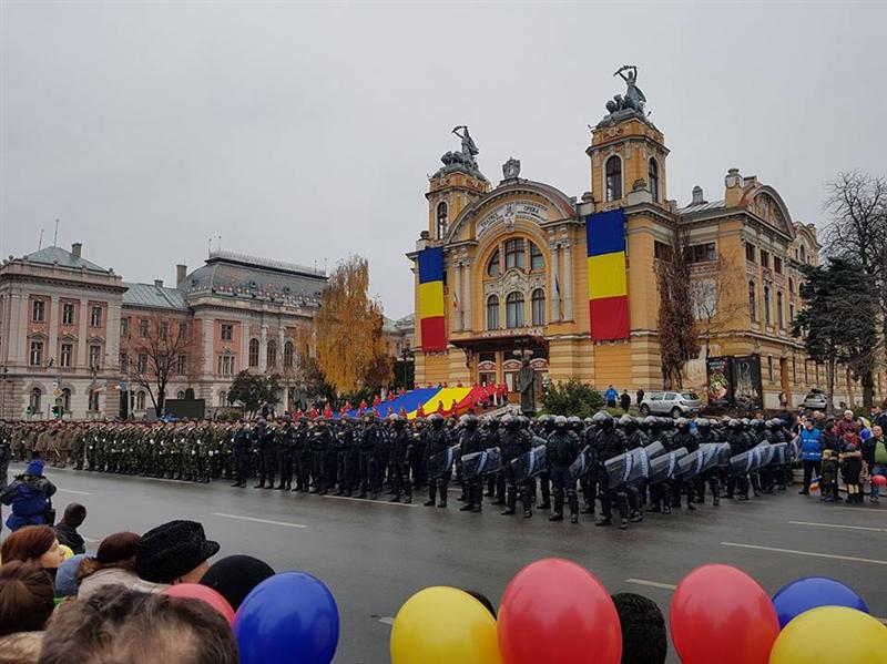 Paradă militară de Ziua României, în centrul Clujului. Imnul Național, intonat de mezzosoprana Lavinia Bocu VIDEO