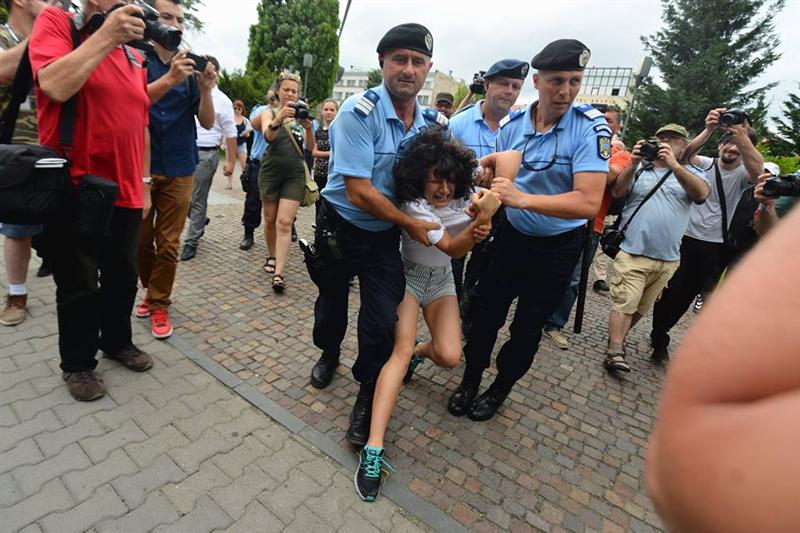 Scandalul a pornit de la replica tinerei - "Am fost acolo, nu a fost obscen" - la discursul unui vorbitor la marşul normalităţii. De asemenea, tânăra a refuzat să se legitimeze, pe motiv că nu avea asupra ei buletinul, şi nu a dorit să părăsească mitingul spunând că vrea să asculte până la final discursurile. Din acest punct, lucrurile au degenerat.