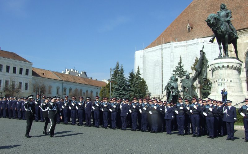 296 de elevi ai Şcolii de Agenţi de Poliţie „Septimiu Mureşan” Cluj-Napoca au depus, vineri, jurământul militar în cadrul festivităţii organizate pentru prima dată în centrul municipiului Cluj-Napoca.