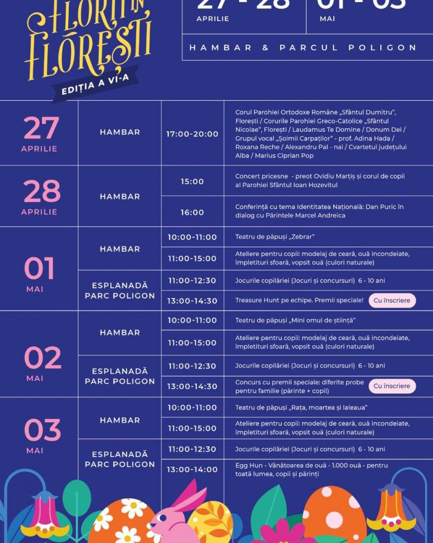 Vă așteptăm cu drag la Hambarul din Parcul Poligon și pe esplanada din fața acestuia pentru a petrece împreună momente de neuitat. Programul întregului eveniment îl găsiți în imaginile de mai jos. Ne vedem sâmbătă ca sa ne bucurăm împreună de frumusețea primăverii și de tradițiile noastre dragi!”, a transmis Bogdan Pivariu.