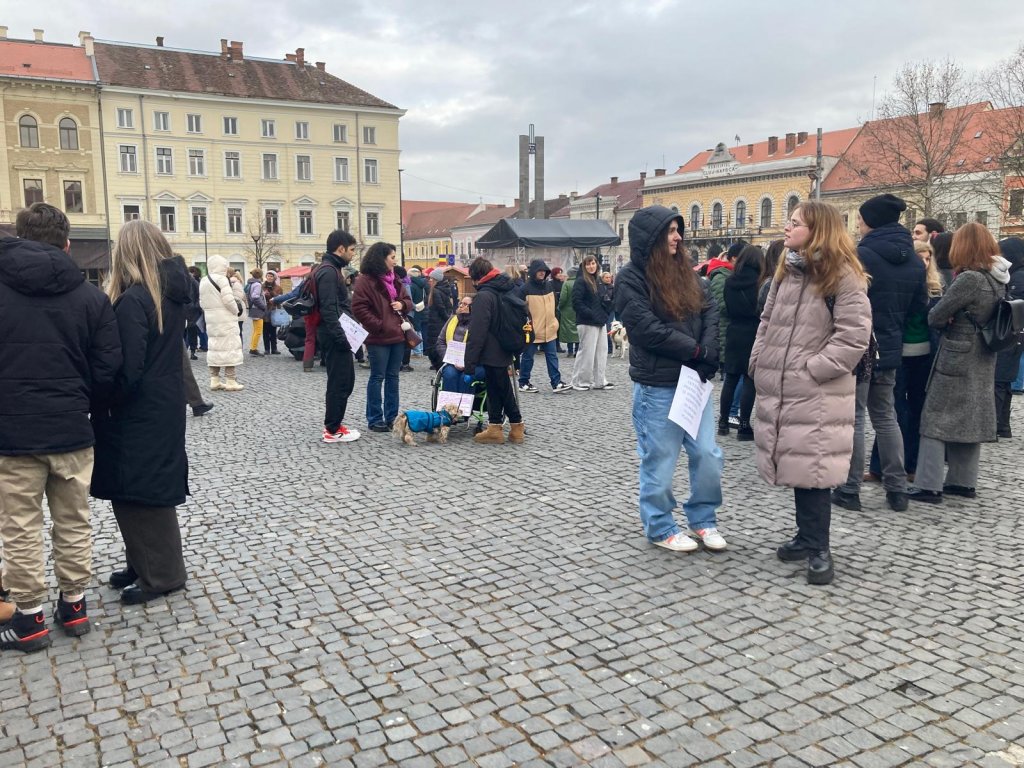 Câteva zeci de persoane au protestat duminică în Piața Unirii împotriva modului în care statul gestionează problema animalelor fără stăpân.