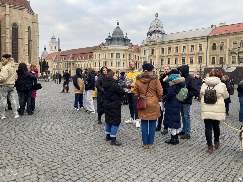 Foto Protest la Cluj-Napoca. Zeci de oameni în stradă pentru protecția animalelor
